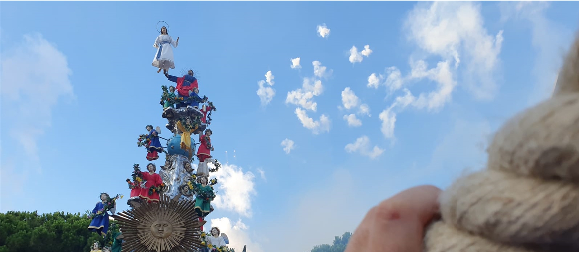 Immagina una grande processione attraverso le strade di Messina, con la Vara al centro della scena, il grande carro votivo a forma piramidale alto oggi 14 mt e dal peso di 8 tonnellate che rappresenta l’Assunzione in cielo di Maria Vergine.
